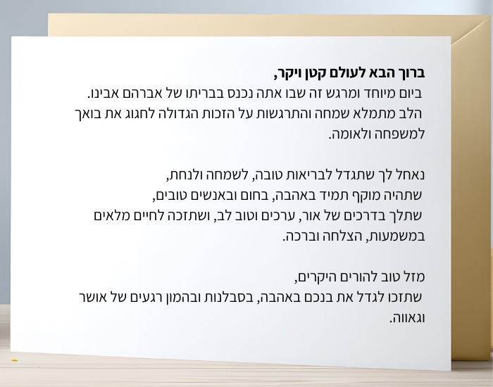 איך כותבים ברכה לברית מילה עם הולדת הבן